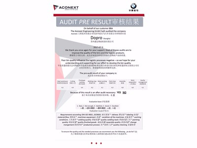 宝马供应商审核证书